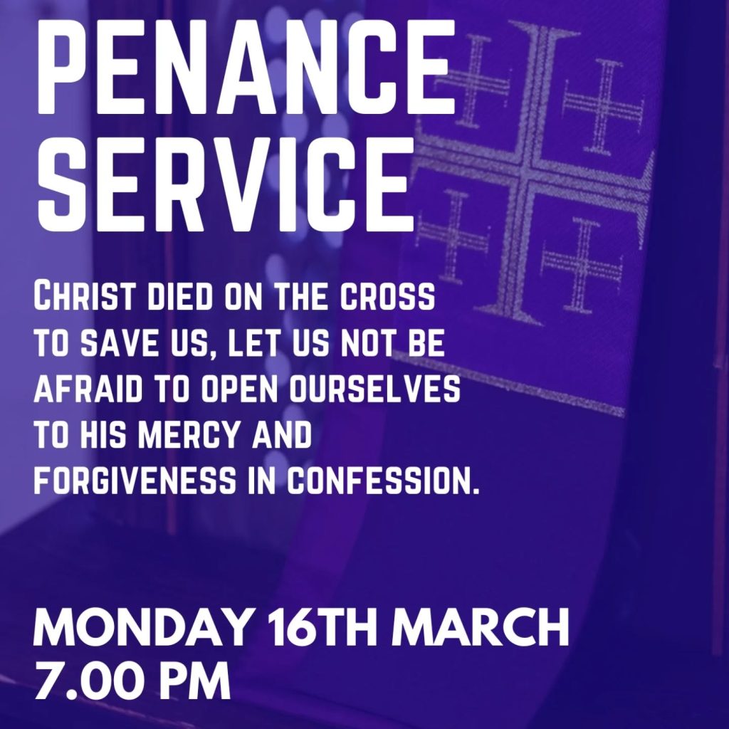 Join us on Monday evening at 7.00 pm in St Joseph’s for the Deanery Lenten Penance Service. Priests from across the Deanery will be available to celebrate individual Reconciliation as part of the the service. Fr Erasmus will be attending this service.