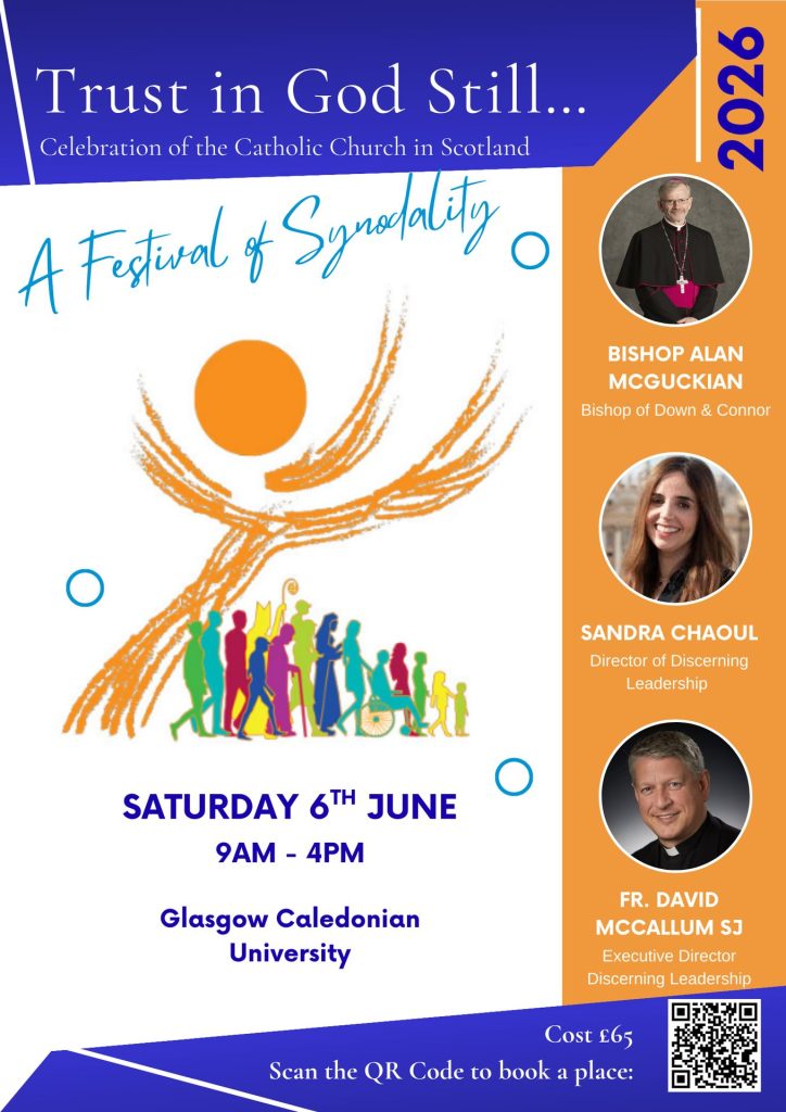 You are invited to a National Festival of Synodality at Glasgow Caledonian University, a day inspired by Pope Francis’ call to be “witnesses to synodality.” The Festival will focus on Conversation in the Spirit, a simple and powerful way of communal discernment rooted in listening, conversion and mission. Tickets available: bit.ly/synodality26