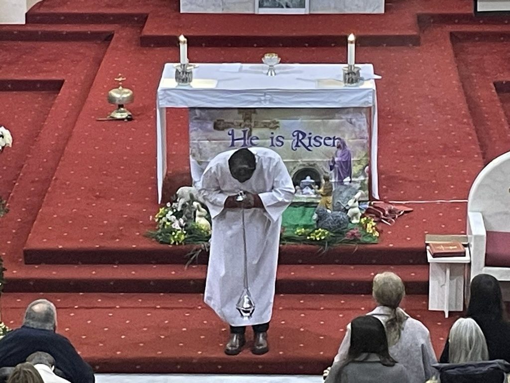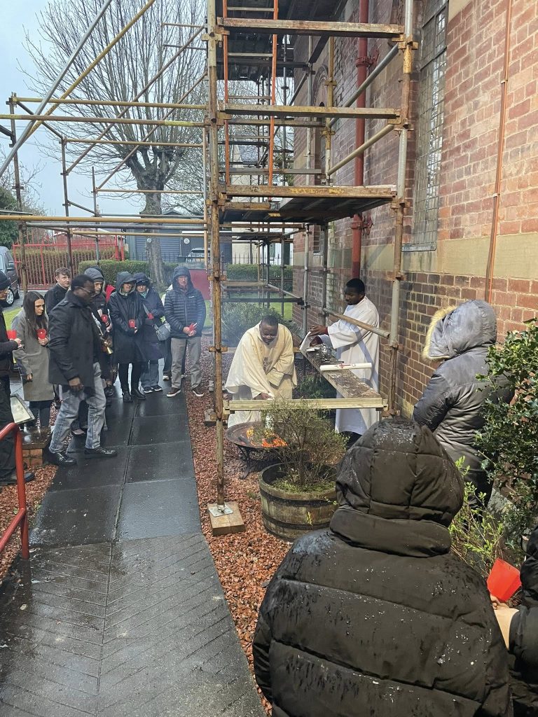 We had a lovely Easter Vigil last night and Storm Dave didn’t stop us being outside!