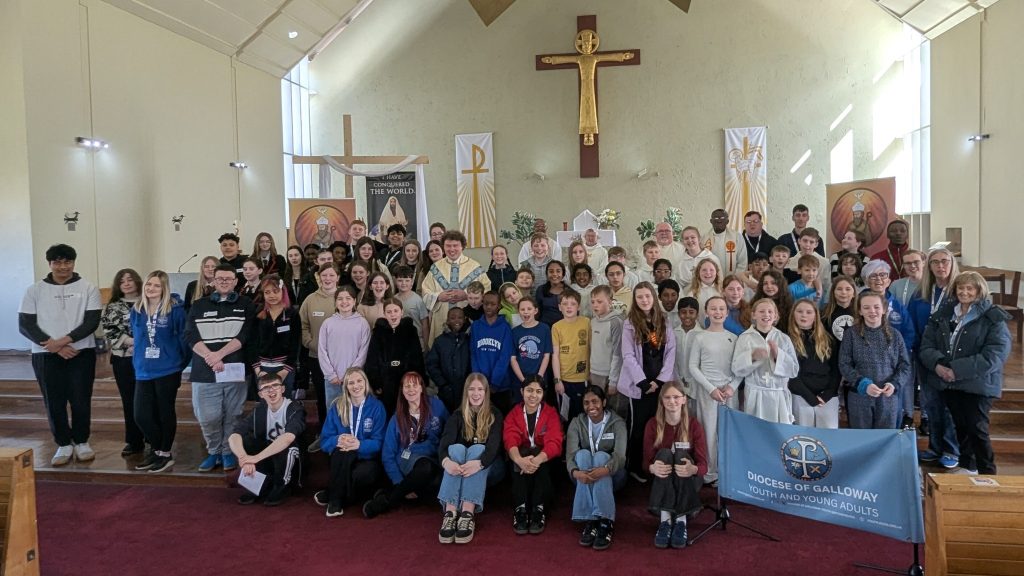On Saturday, sixty-five young people, as well as adult youth leaders and Caritas volunteers from across our Diocese gathered at St Teresa’s Church, Dumfries, for the @rcdgyouth Easter Youth Gathering. Over the course of the day, they spent time playing a variety of different games – led by the Youth Office’s S3 Junior Leader and S4 Mentors – as well as hearing talks on the theme of the Holy Spirit as part of our Diocesan Year of Prayer. The talks focused on the Gifts of the Holy Spirit and how the young people are invited to use them.