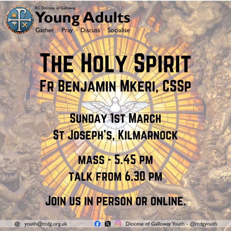 Aged S5-30? Join us tonight in St Joseph’s Church, Kilmarnock as we continue our monthly Young Adults’ evenings as Fr Ben Mkeri, CSSp joins us to speak on ‘The Holy…