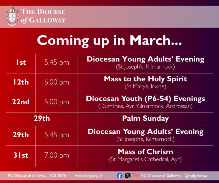 There’s lots coming up across the Diocese in March, including the annual Mass of Chrism where the priests of the Diocese will gather at the Cathedral to renew the promises…